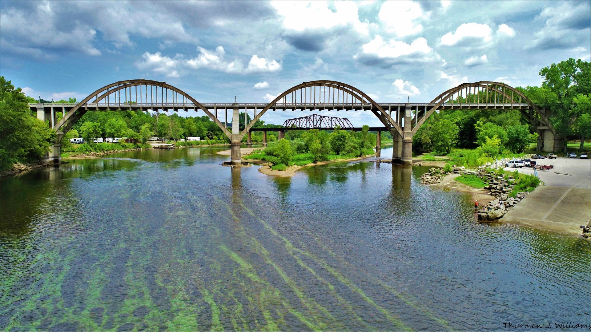 The Cotter Bridge, officially known as the R.M. Ruthven Bridge in honor of the County Judge, stands as a significant historical landmark for Cotter. This impressive structure is believed to be the largest remaining bridge of its kind. Designed by the Marsh Engineering Company, the Cotter Bridge utilizes a reinforced-concrete rainbow arch design patented by James Marsh in 1912.