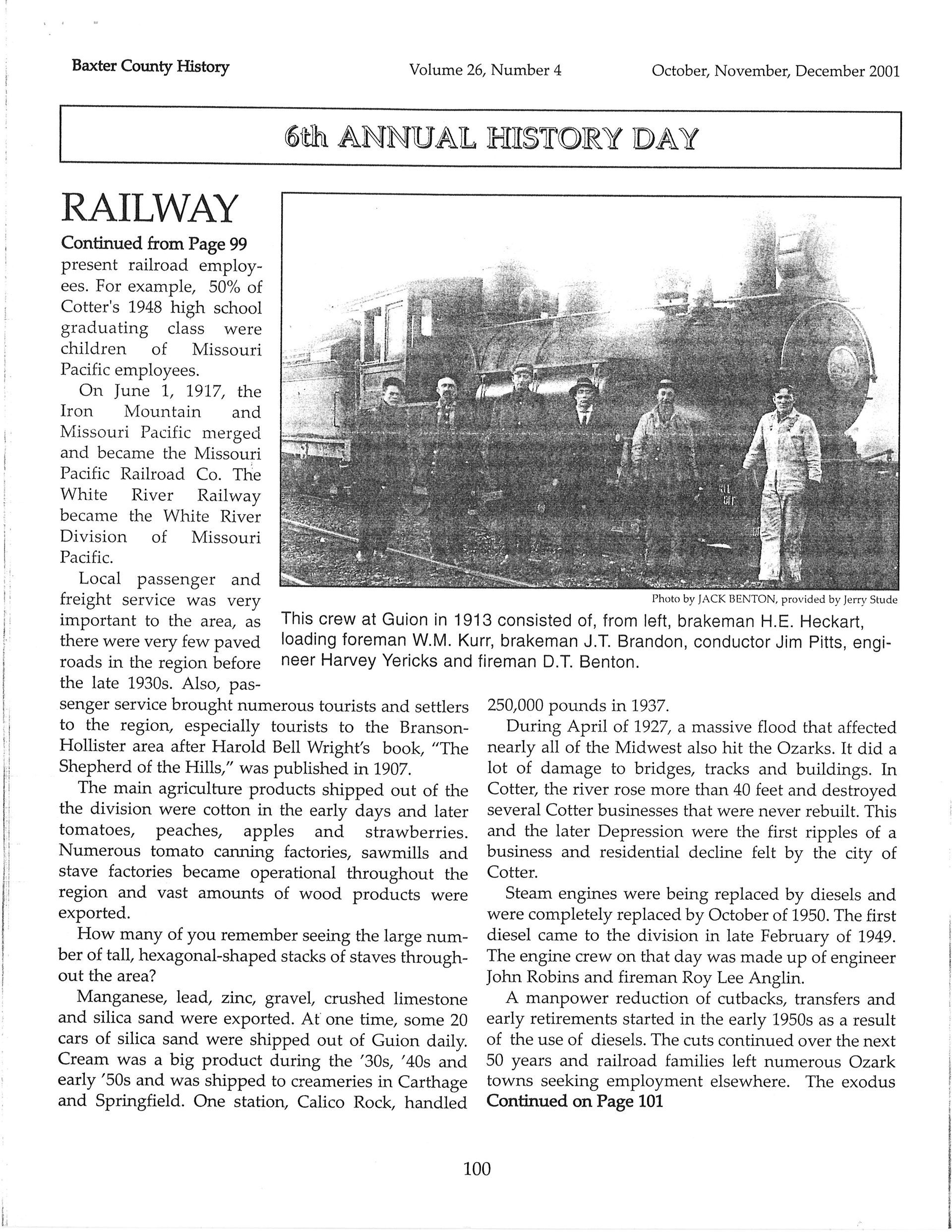 The vision for the town of Cotter began to take shape with the Red Bud Realty Company, incorporated in 1903. Key figures in this company, W.V. Powell, Jerry South, and Thomas Combs, are still remembered today as several of Cotter's streets bear their names.