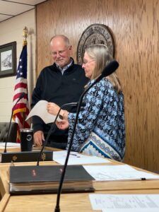 Saturday Club President Mertice Kray presented a check from the Cotter Cemetery Perpetual Fund in the amount of $3,796.70 to the City of Cotter.