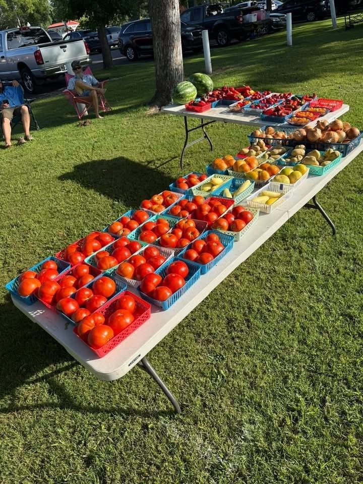 The Cotter Farmers Market is located in BIG SPRING PARK next to the Restroom under the pine trees.