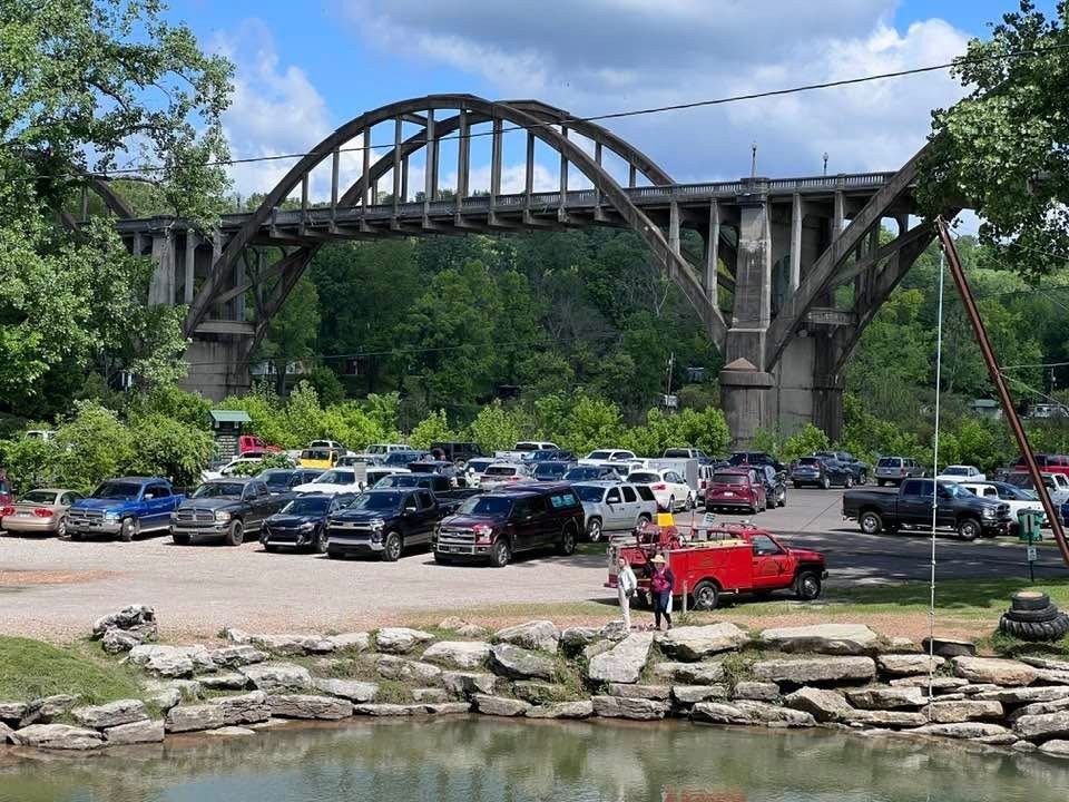 The spring itself bubbles up into a pool varying in depth , perfect for young kids to splash around while older kids (and grown-up kids) show off their flips on the rope swing, or float lazily with the current. There’s a nearby pavilion, shaded benches, a walking trail that follows the riverbank, and even an old iron bridge that gives major vintage Americana vibes (a popular photo op).